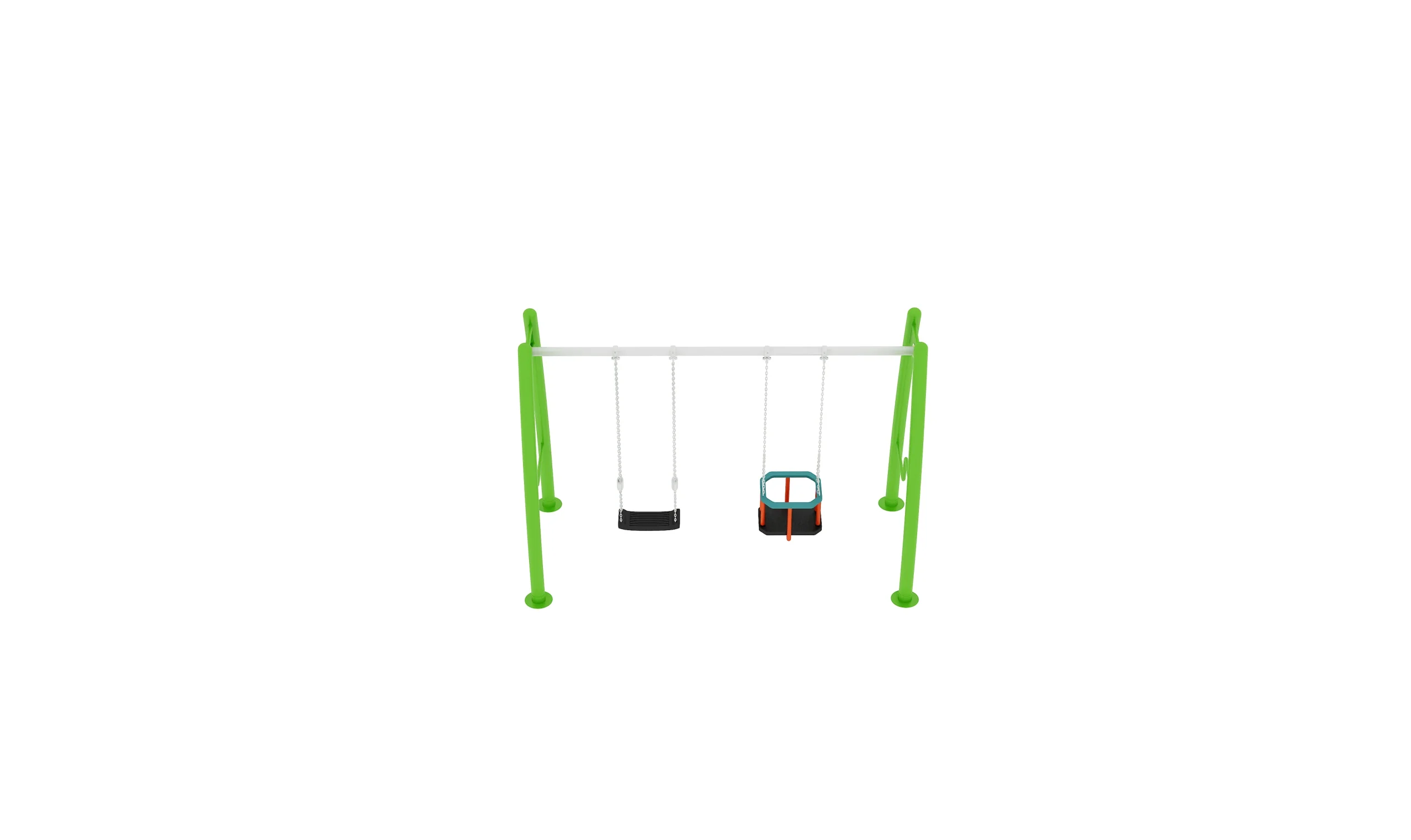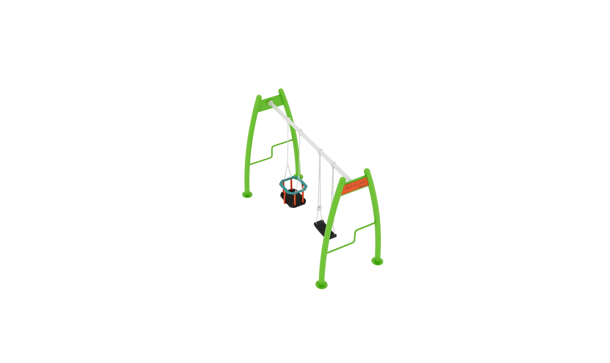 Es un columpio moderno y colorido, diseñado tanto para la diversión como para la seguridad de los niños. La estructura principal está compuesta por dos robustos marcos laterales en forma de «A» invertida que proporcionan una base estable y estética atractiva. Estos marcos están unidos por una barra horizontal metálica, de la que cuelgan dos asientos diferentes, cada uno adaptado a distintas edades o necesidades. Con capacidad para 2 niños.Esta diseñado tanto para su diversión como para su seguridad. Combina funcionalidad, diseño y seguridad, convirtiéndolo en una excelente opcion para parques infantiles, jardines escolares o áreas recreativas.